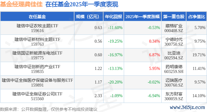 建信中证全指证券公司ETF现任基金经理为龚佳佳。其中在任基金经理龚佳佳已从业6年又61天,2020年6月29日正式接手管理建信中证全指证券公司ETF,任职期间累计回报为-5.14%。目前还管理着6只基金产品(包括A类和C类),其中本季度表现最佳的基金为建信国证新能源车电池ETF(159775),季度净值涨幅为6.87%。